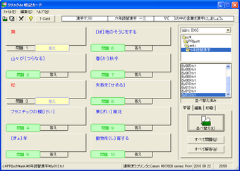 クリックde暗記カードは、画面内に並ぶ10枚の「単語カード」を使って、漢字や英単語などを学べる学習ソフトです。紙の単語カードのように、カードの裏表にはそれぞれ漢字と読みがな、英単語と和訳などが表示されます。それらをワンクリックで「めくり」、暗記学習に役立てることができます。操作は簡単で、動作も素早いため、短時間で大量の暗記に挑戦できるでしょう。受験や資格試験前など、限られた時間内で大量の内容を暗記したい人にお勧めです。